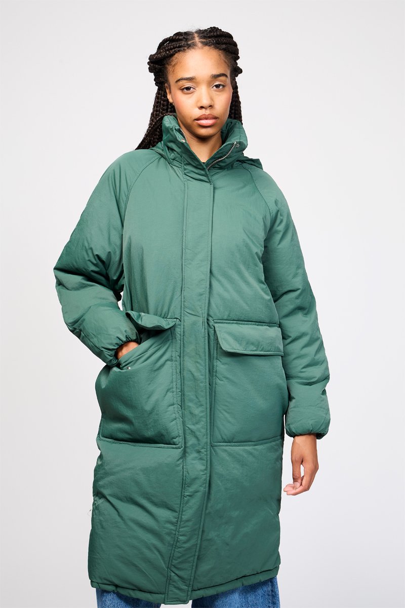 Doudoune longue à capuche - Vert