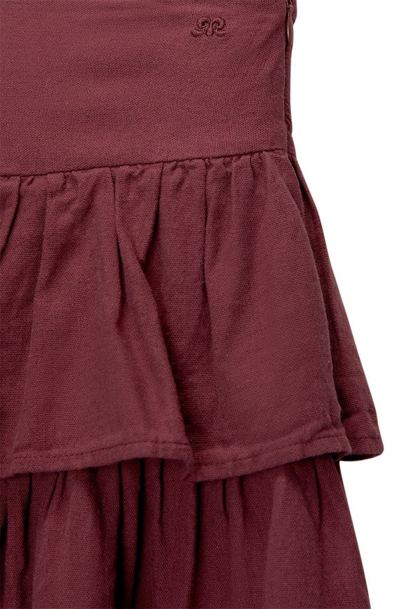 Jupe volantée en lin - Bordeaux