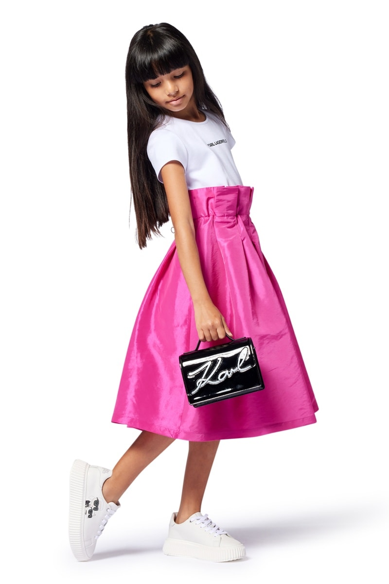 Le créateur Karl Lagerfeld a apporté un vent de fantaisie au dressing des enfants à travers une collection chic, rock et graphique, à son image. Il mettait en avant son célèbre chat Choupette et son propre profil, dans un univers fun et décalé. Un vestiaire digne des collections haute couture pour permettre aux enfants d’exprimer eux aussi leur sens de la mode.