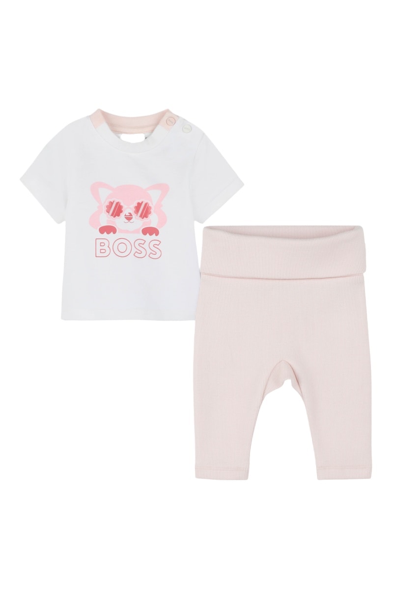T-shirt et pantalon en coton biologique - Blanc et rose poudré - Boss