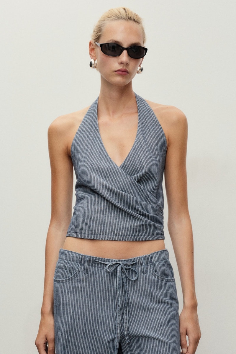 Haut en denim croisé à rayures.