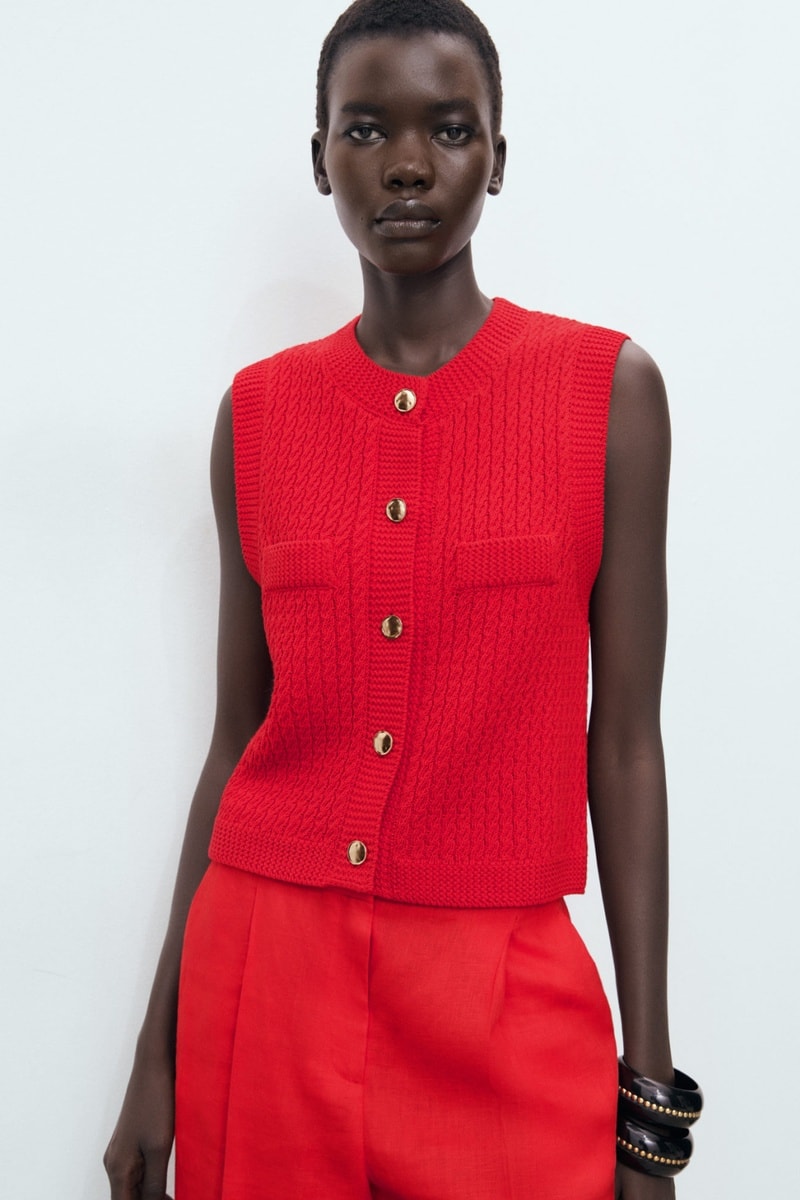 Gilet maille épaisse boutons - Rouge