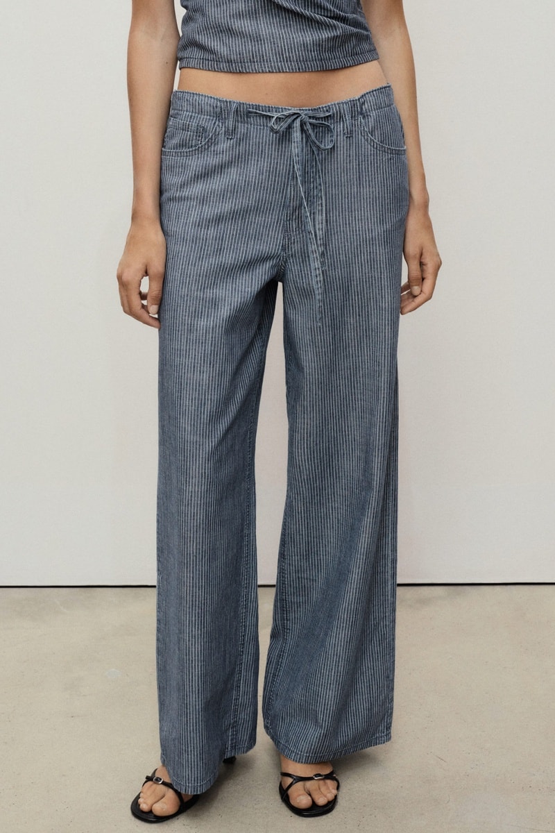 Pantalon wideleg denim avec ceinture.