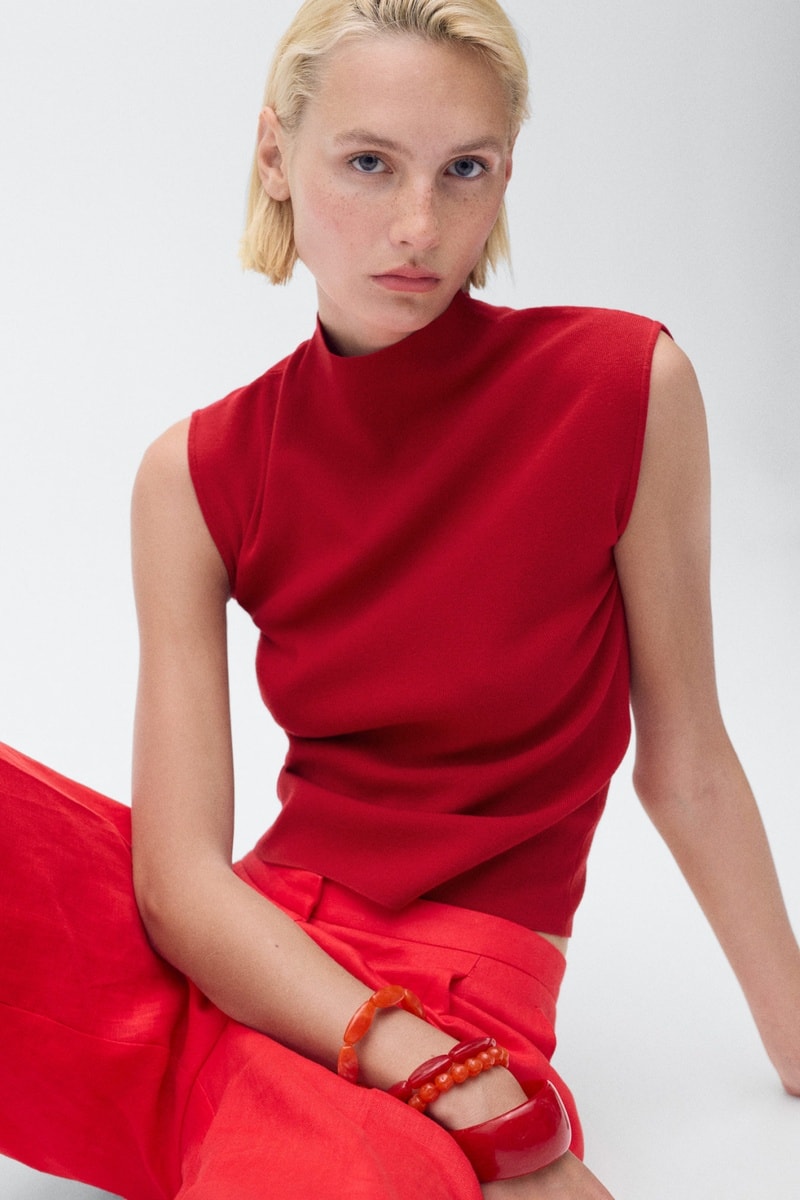 Top maille col montant - Rouge