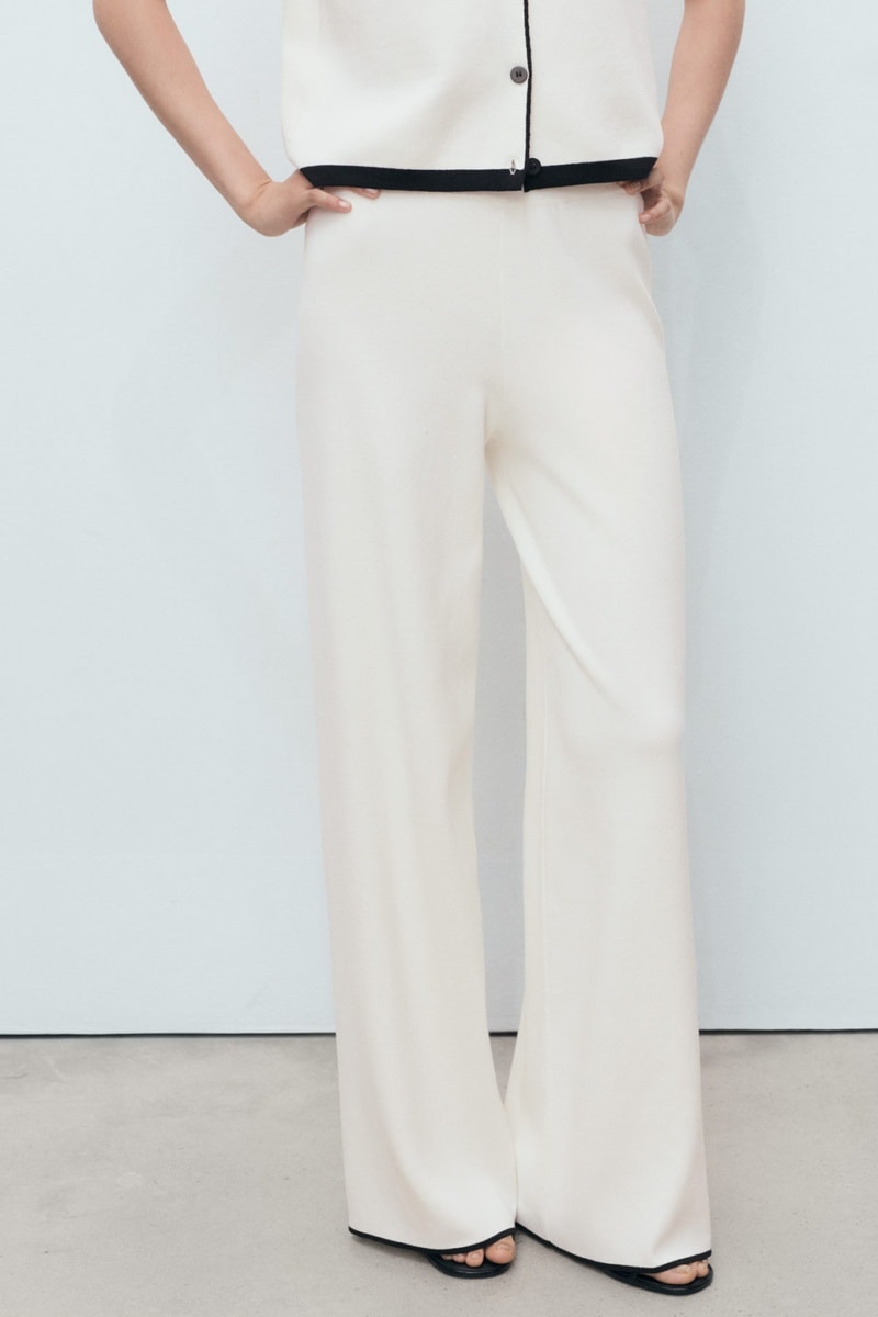 Pantalon maille bas contrastant - Ecru
