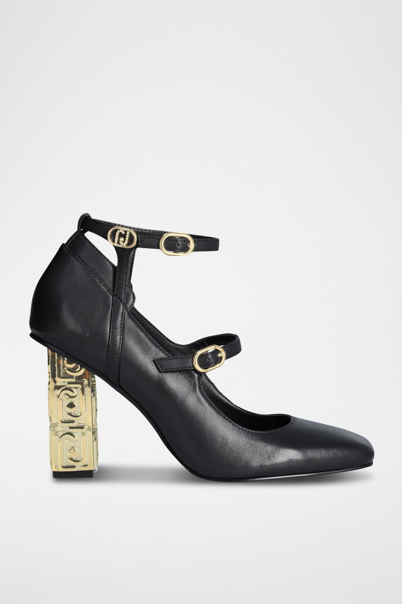 Salomés à talons en cuir de chèvre Jennifer - Noir