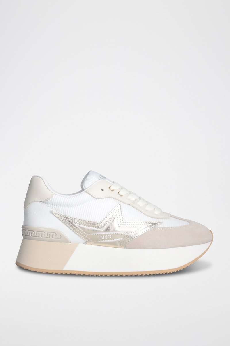 Baskets plateformes en cuir - Blanc, beige et doré