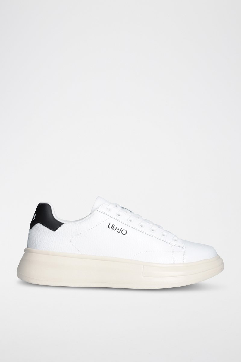 Sneakers plateformes en cuir - Blanc, noir et beige