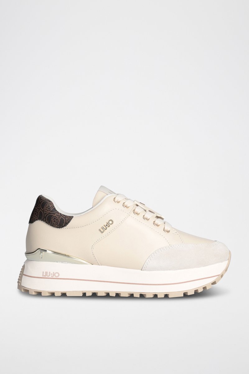 Baskets plateformes en cuir de taureau Maxi Wonder - Beige et marron