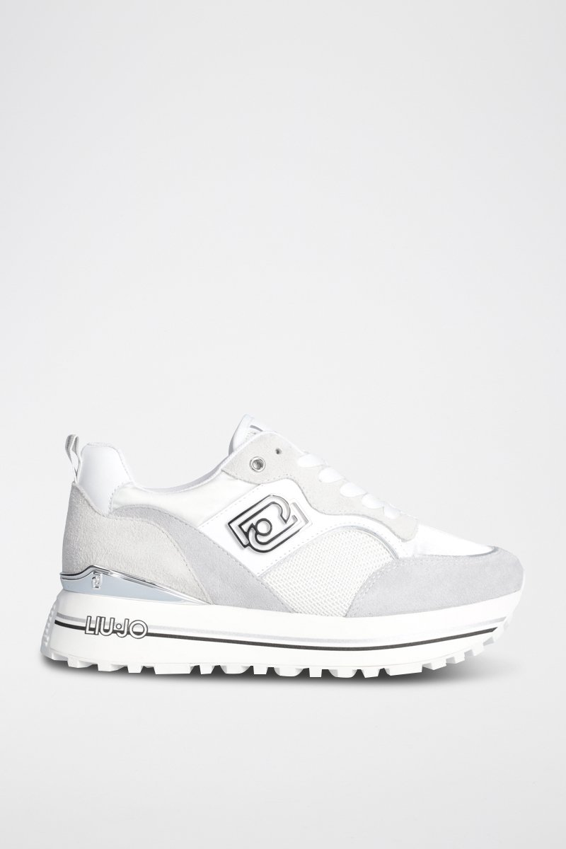 Baskets plateformes en cuir de taureau Maxi Wonder - Argenté, blanc et gris