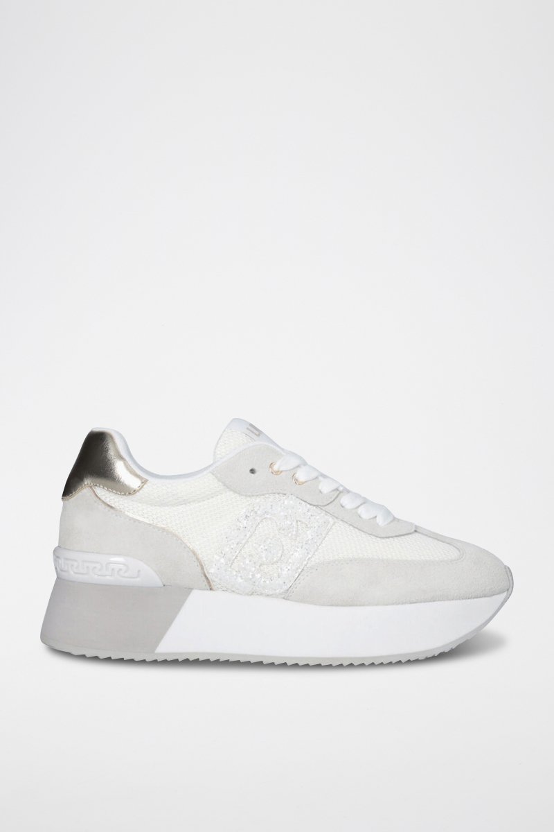 Baskets plateformes en cuir - Blanc, doré et gris