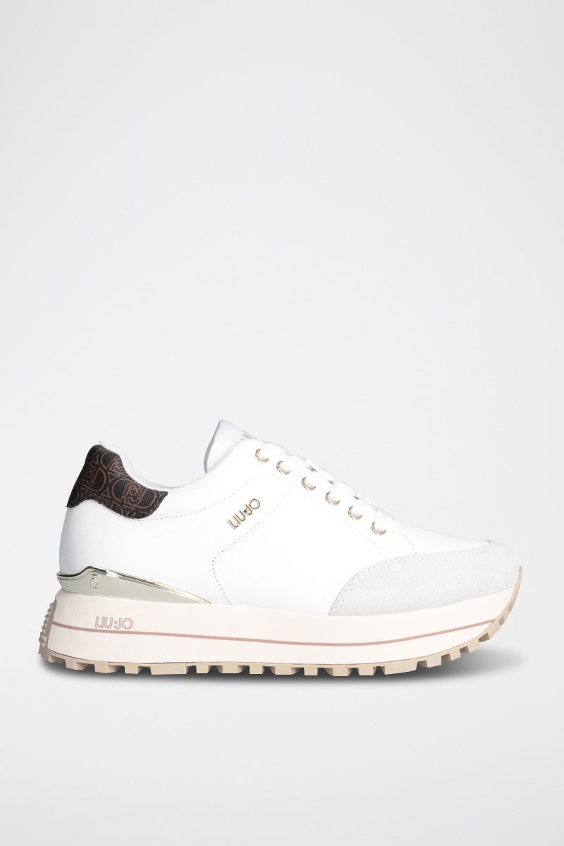 Baskets plateformes en cuir de taureau Maxi Wonder - Blanc, marron et gris