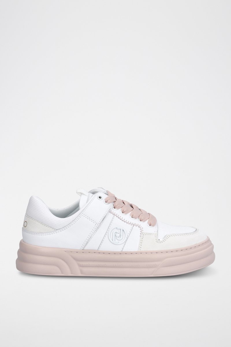 Sneakers plateformes en cuir de taureau Cléo - Blanc et beige