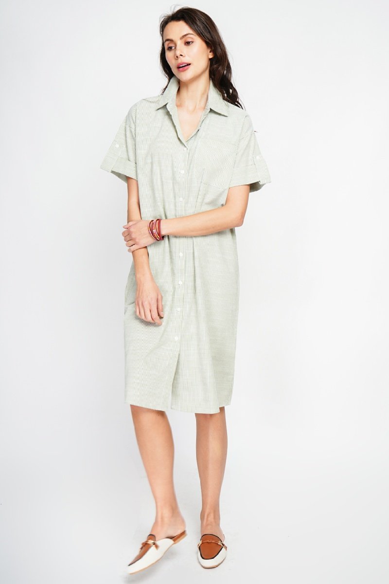 Robe chemise en lin mélangé à manches courtes.