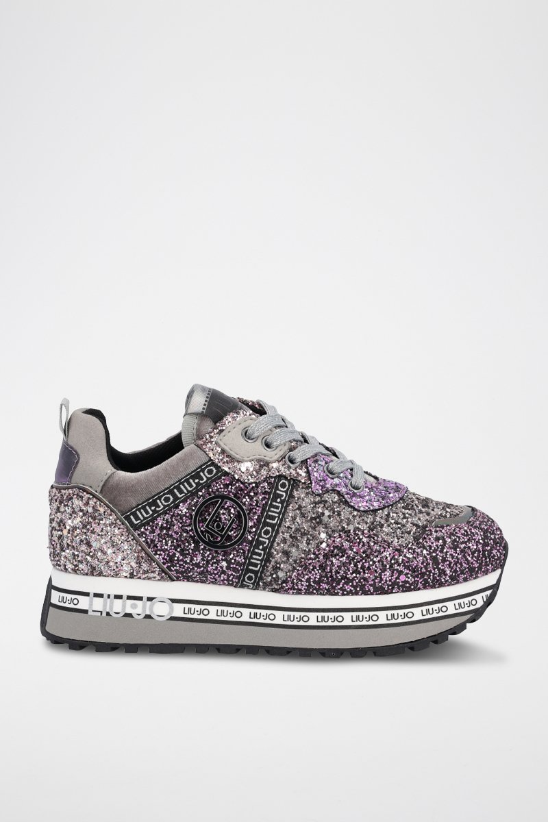 Bandes contrastantes logotées sur les côtés et sur les semelles.