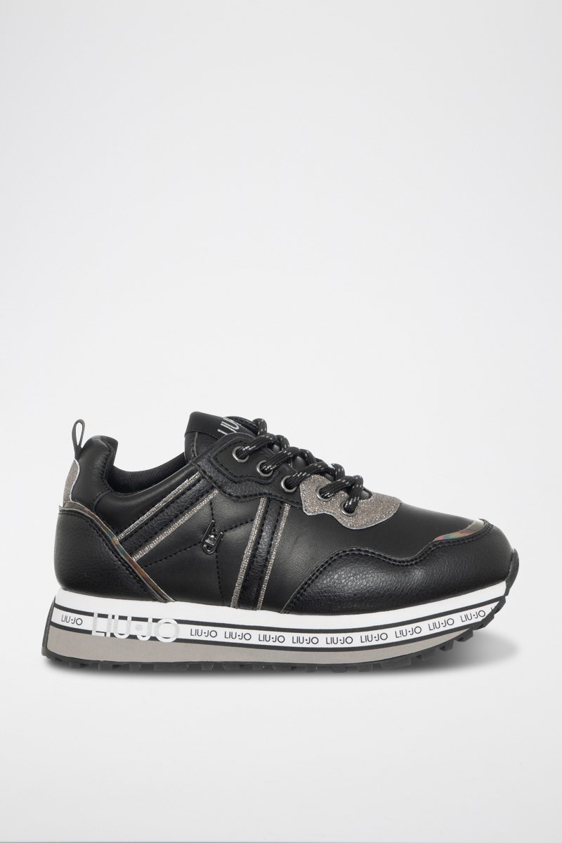 Sneakers plateformes en cuir de taureau Wonder - Noir et argenté