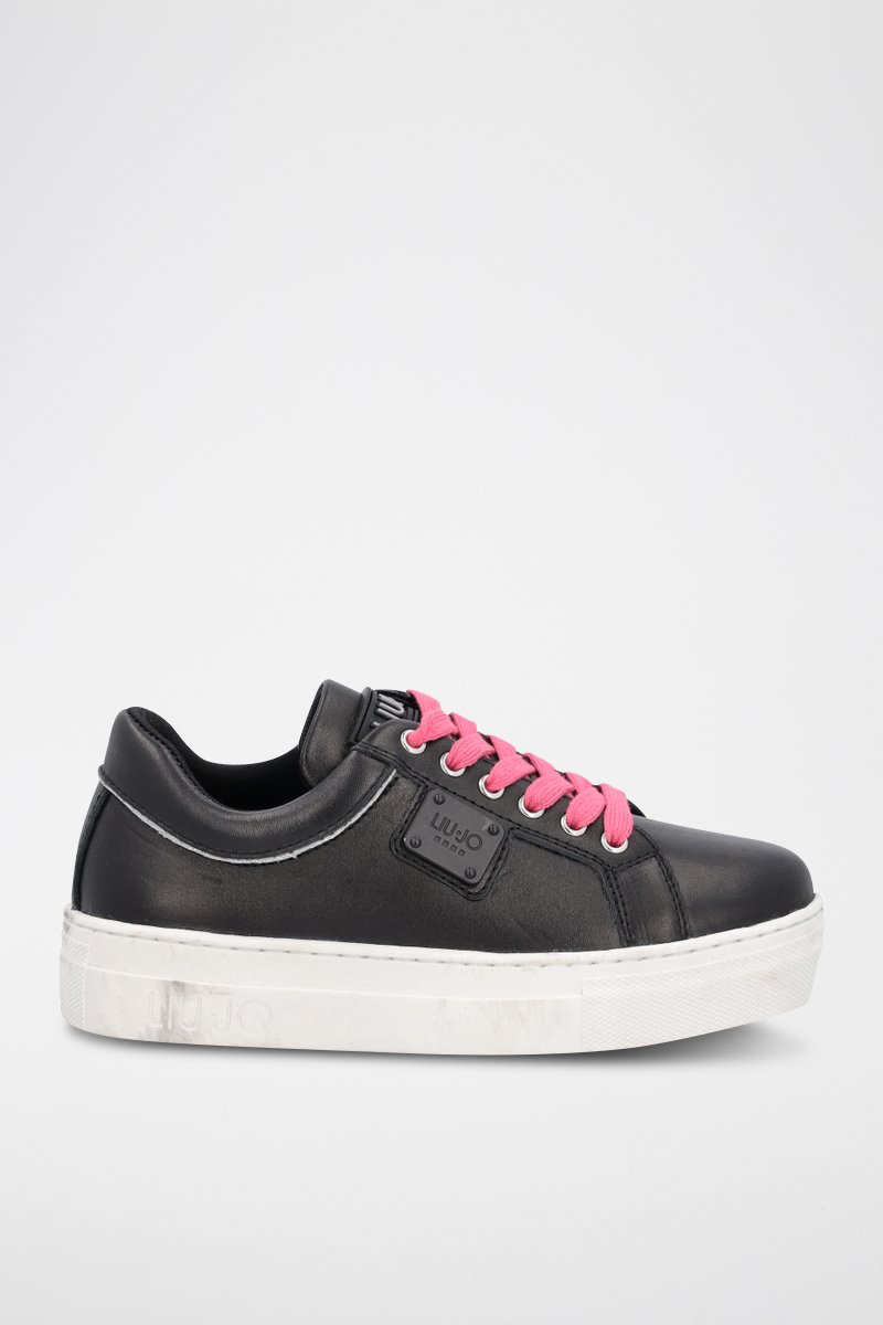 Sneakers en cuir de taureau Alicia - Noir et rose