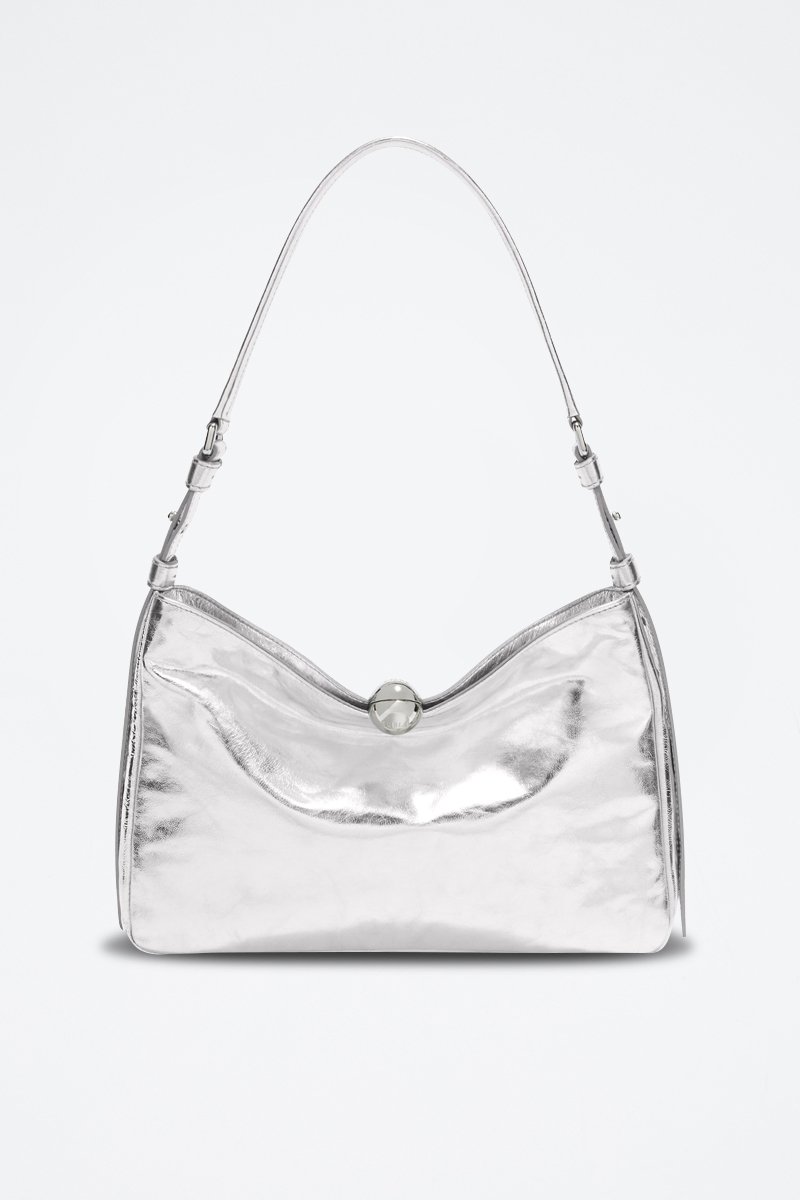 Sac porté épaule en cuir Sfera Soft - Taille M - Argenté