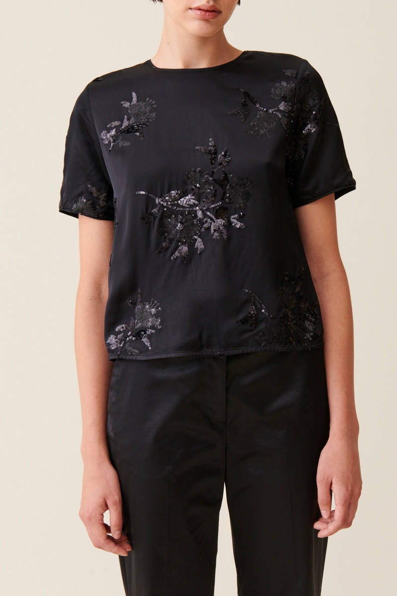 Motifs fleurs à sequins.