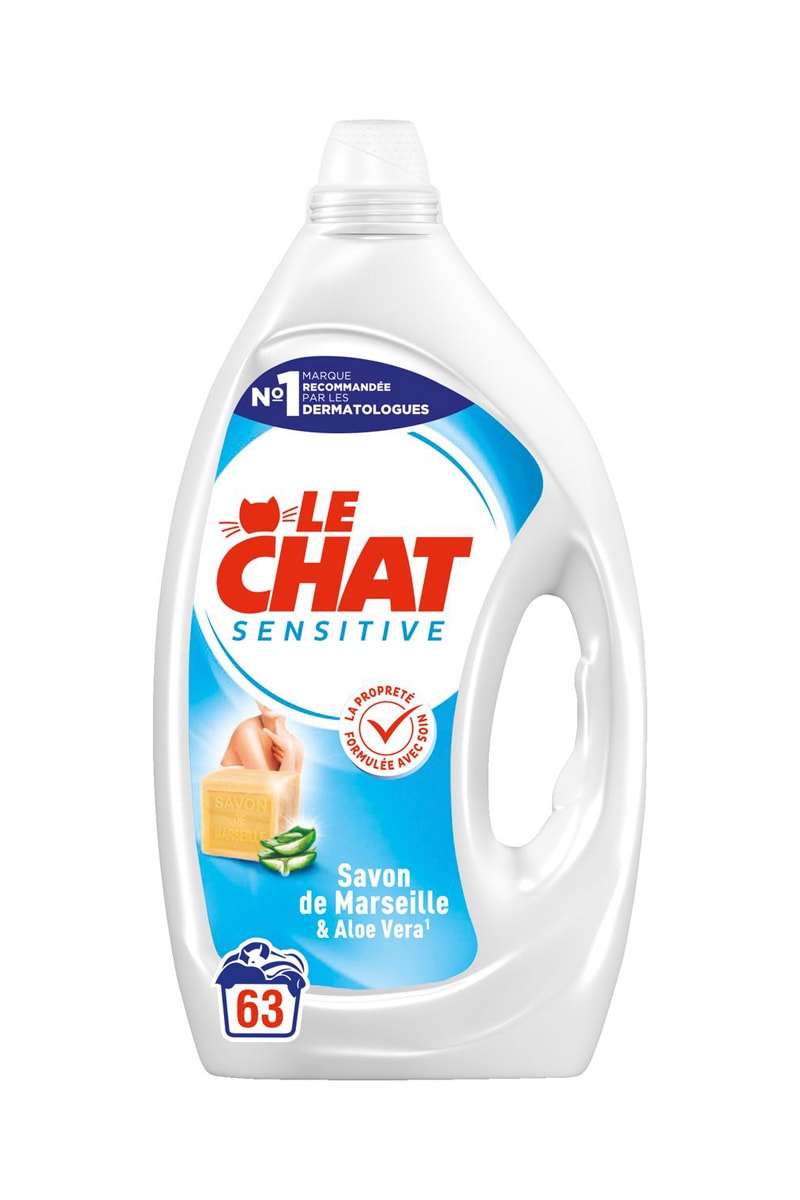 Lessive Sensitive Savon de Marseille et Aloe Vera Le Chat - 63 lavages - 2,835 l