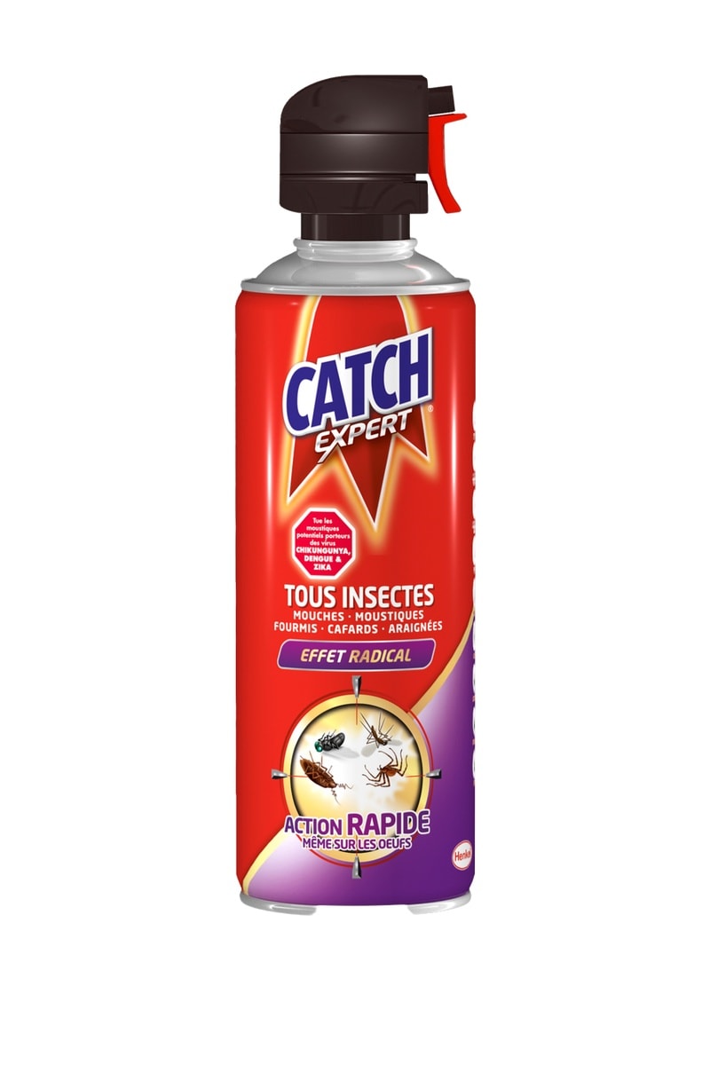 L'aérosol CATCH EXPERT Tous Insectes Volants et Rampants vous garantit une action rapide contre tous les nuisibles de la maison : insectes volants (mouches, moustiques, guêpes), insectes rampants (fourmis, cafards et araignées), et même sur les œufs.