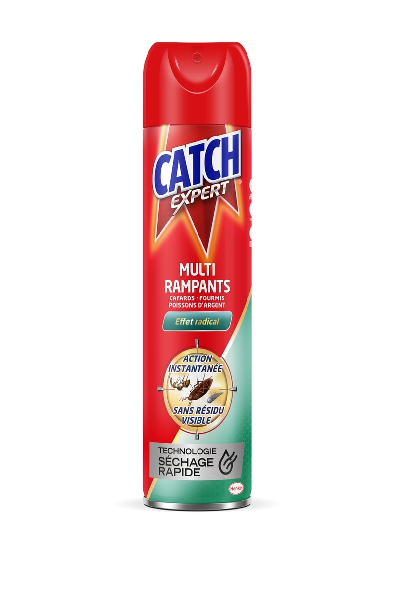 L'aérosol CATCH EXPERT Multi-Rampants agit efficacement contre les insectes rampants dans votre maison : cafards, blattes, fourmis et poissons d'argent.