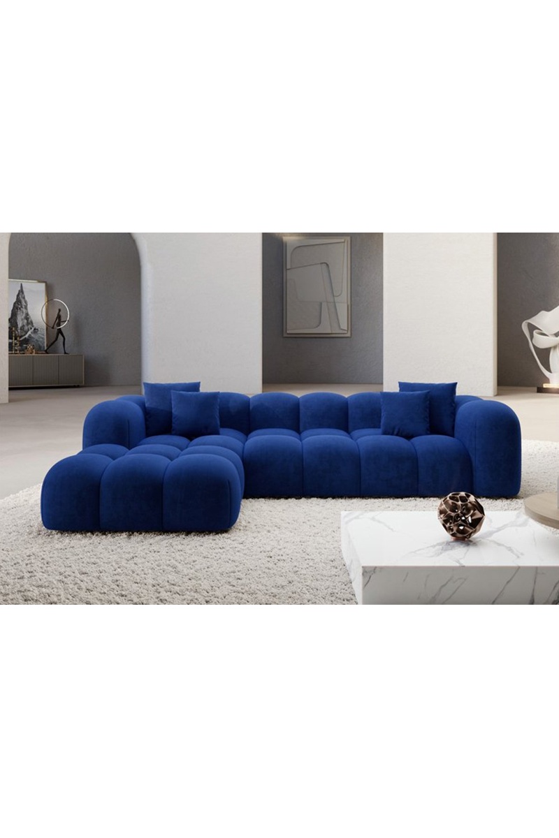 Canapé d'angle gauche Nuvola - Bleu foncé - 5 places - Tissu toucher velours