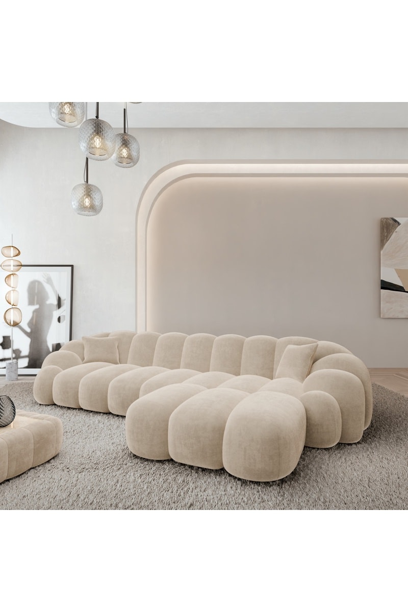Canapé d'angle droit - Crème - 5 places - En tissu velours