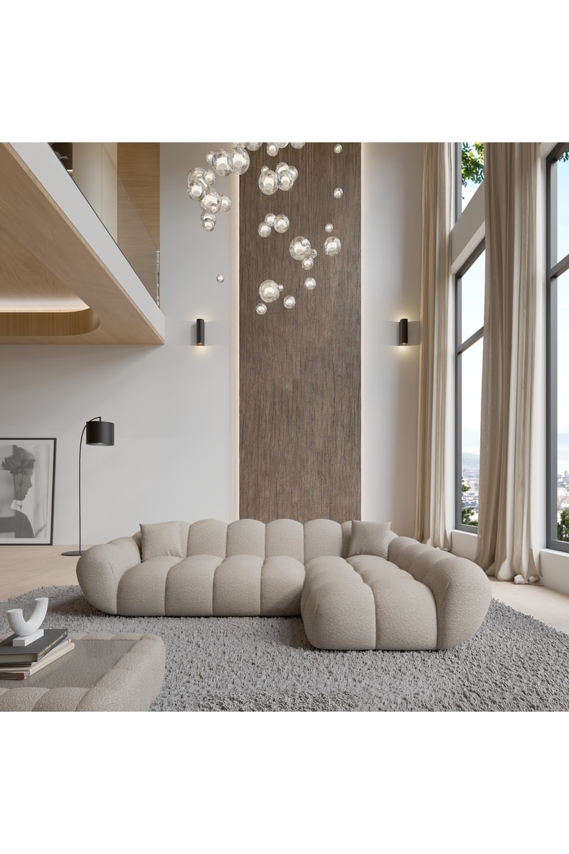 Canapé d'angle gauche - Beige - 4 places - En tissu bouclé