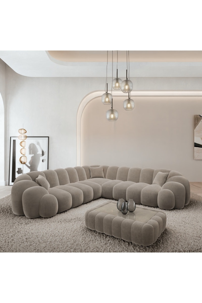 Canapé d'angle gauche - Beige - 6 places - En tissu velours