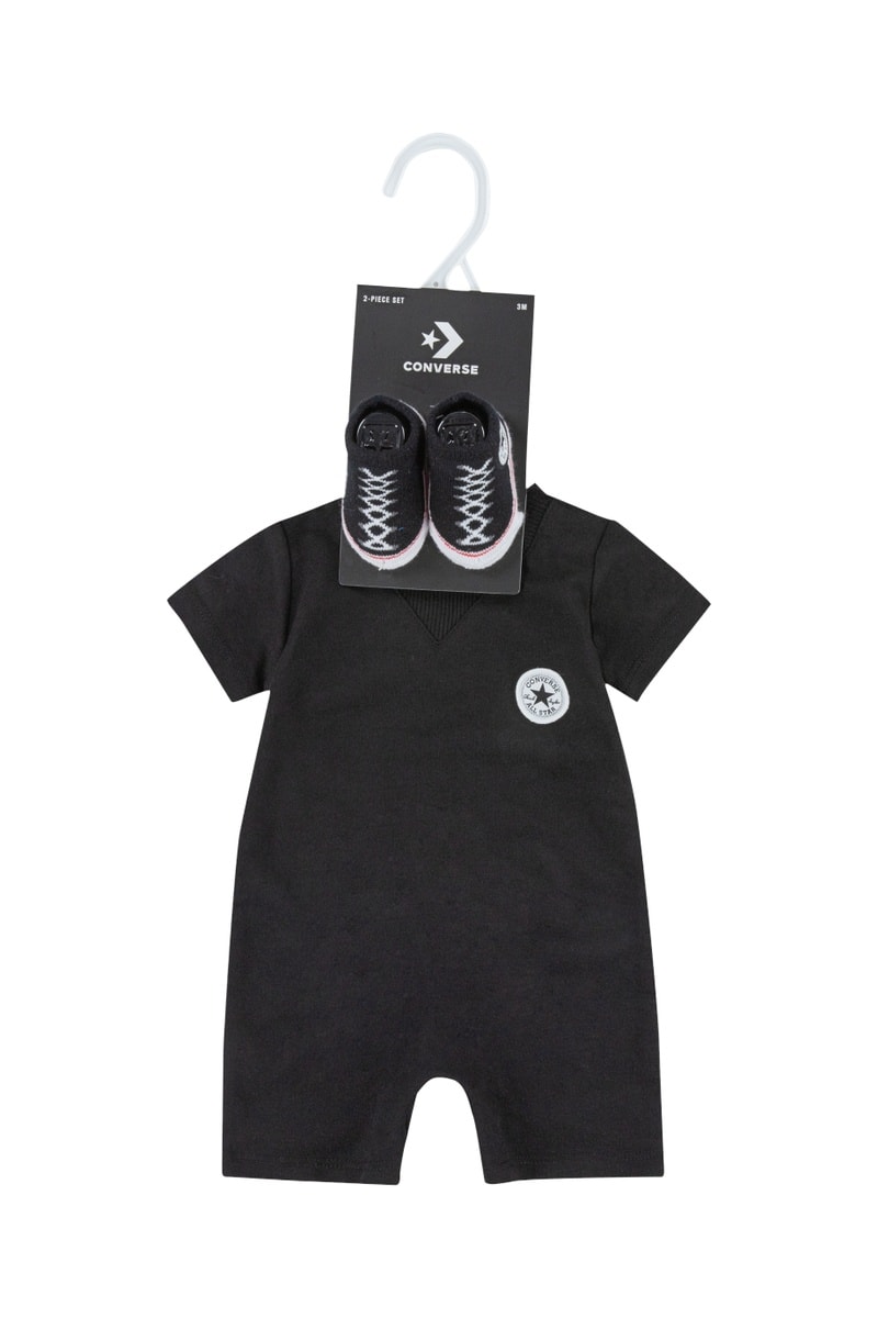 Fermeture pressionnée à l'entrejambe et à l'épaule.