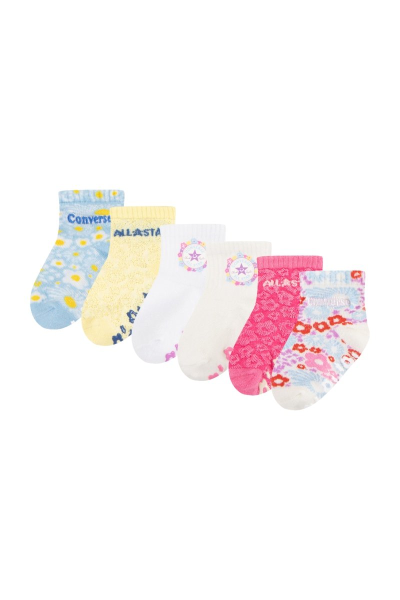 6 paires de chaussettes antidérapantes dont 4 à motifs fleurs et 2 à motifs fleurs sur le côté.