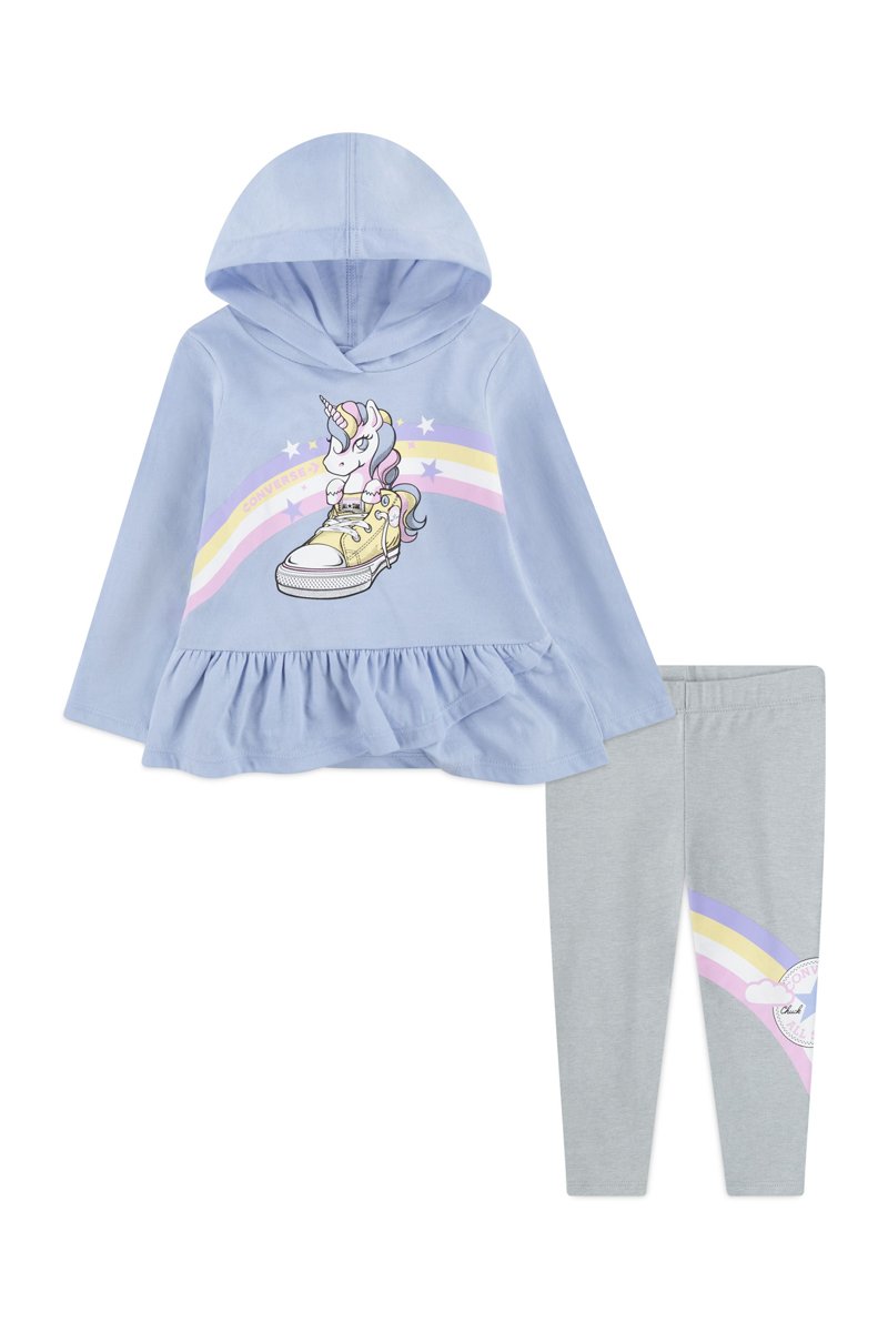 Sweat à capuche et legging - Bleu, rose et gris