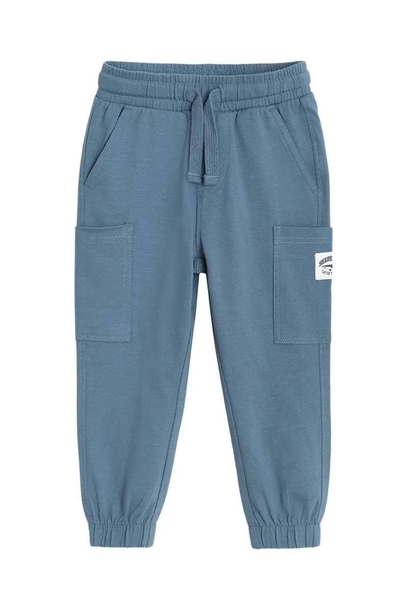 Empiècement avec lettrage et motif requin sur le côté.