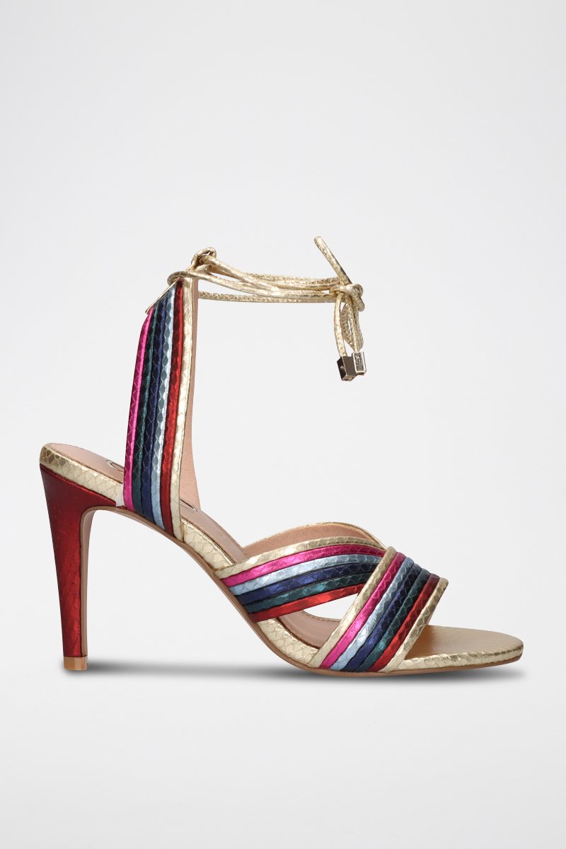 Sandales à talons - Rouge, bleu, rose et doré