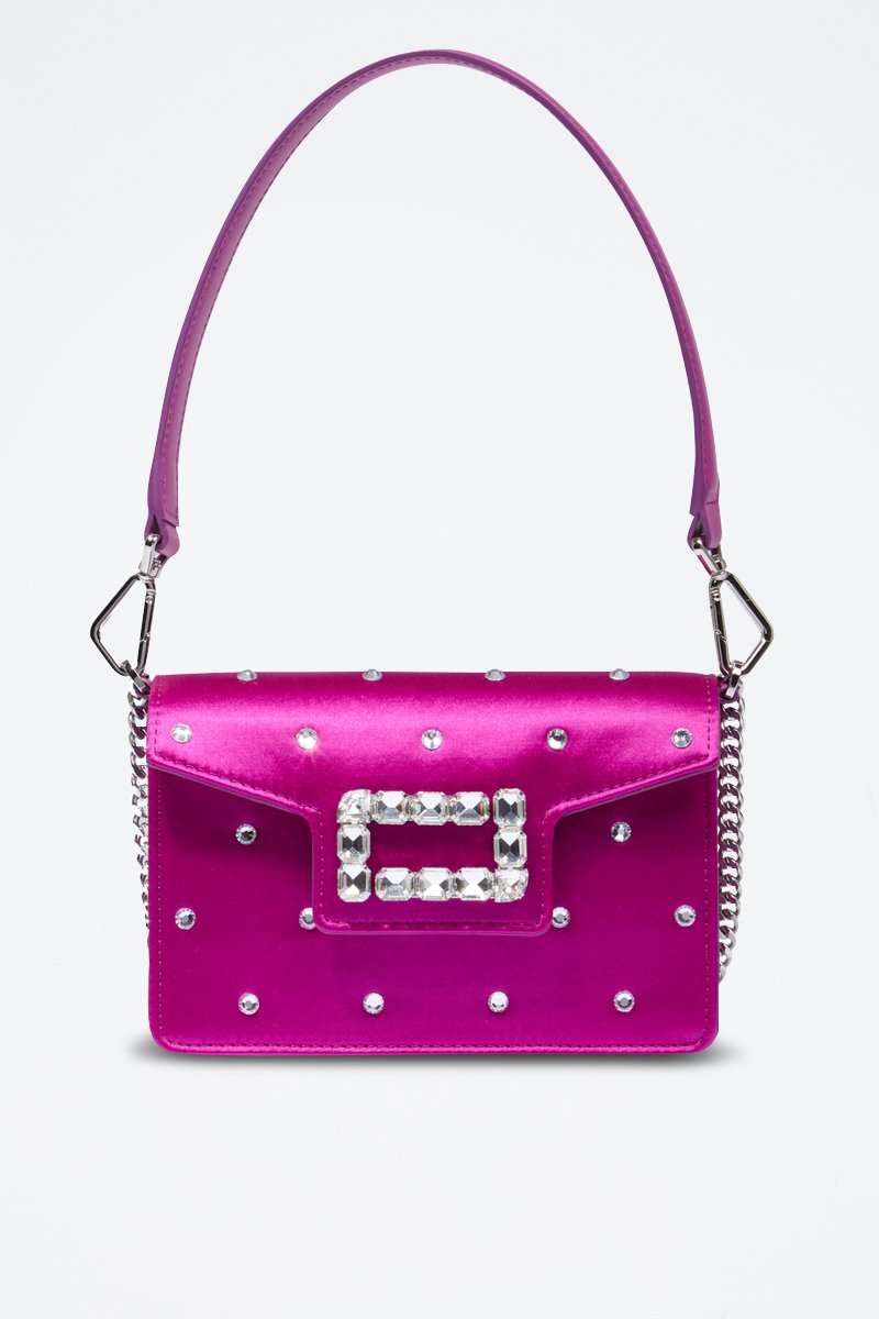 Sac porté épaule en cuir Angele Mini - Fuchsia