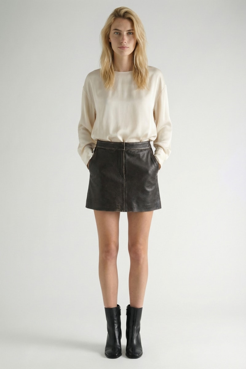 Minijupe en cuir.