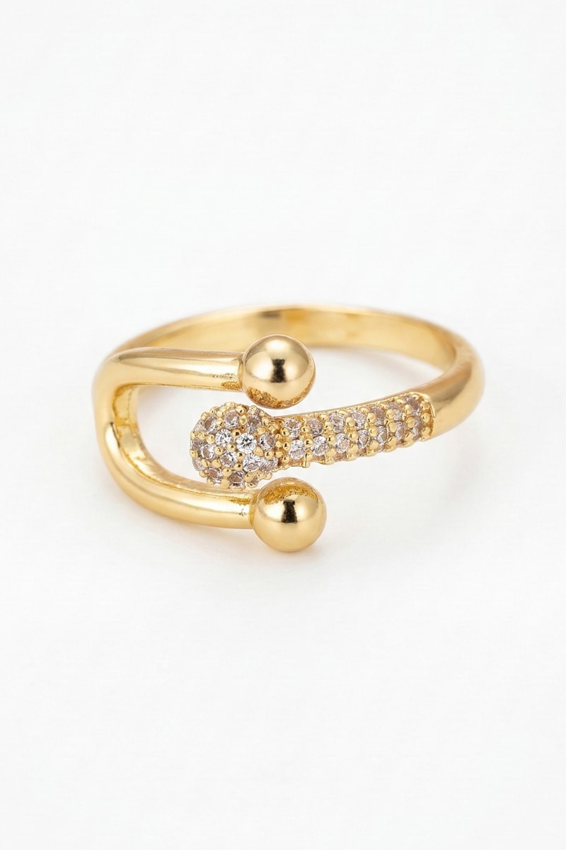 Bague réglable en Plaqué or jaune sertie de zircons.