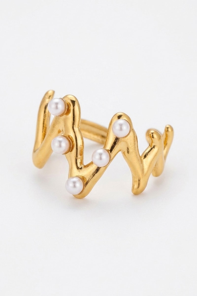 Bague réglable en plaqué or jaune sertie de perles d'imitation.