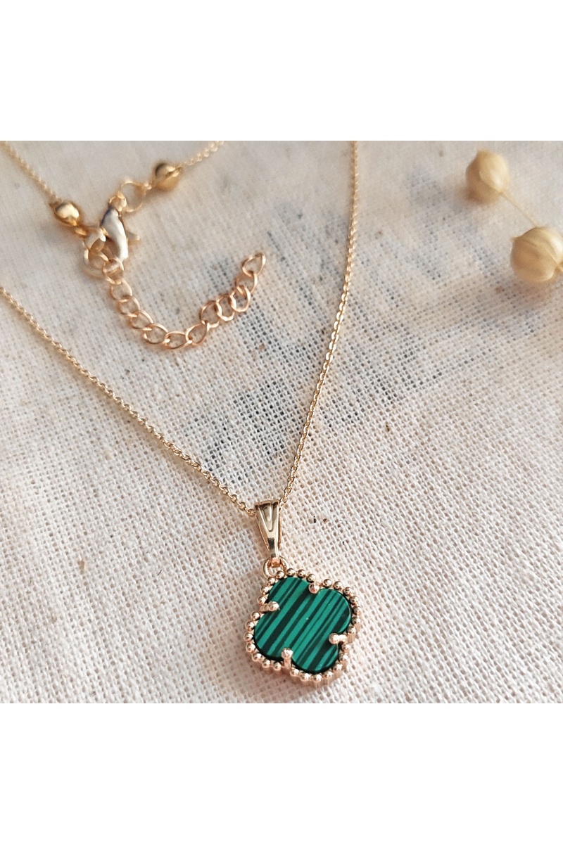 Collier trèfle - Laiton plaqué or & malachite