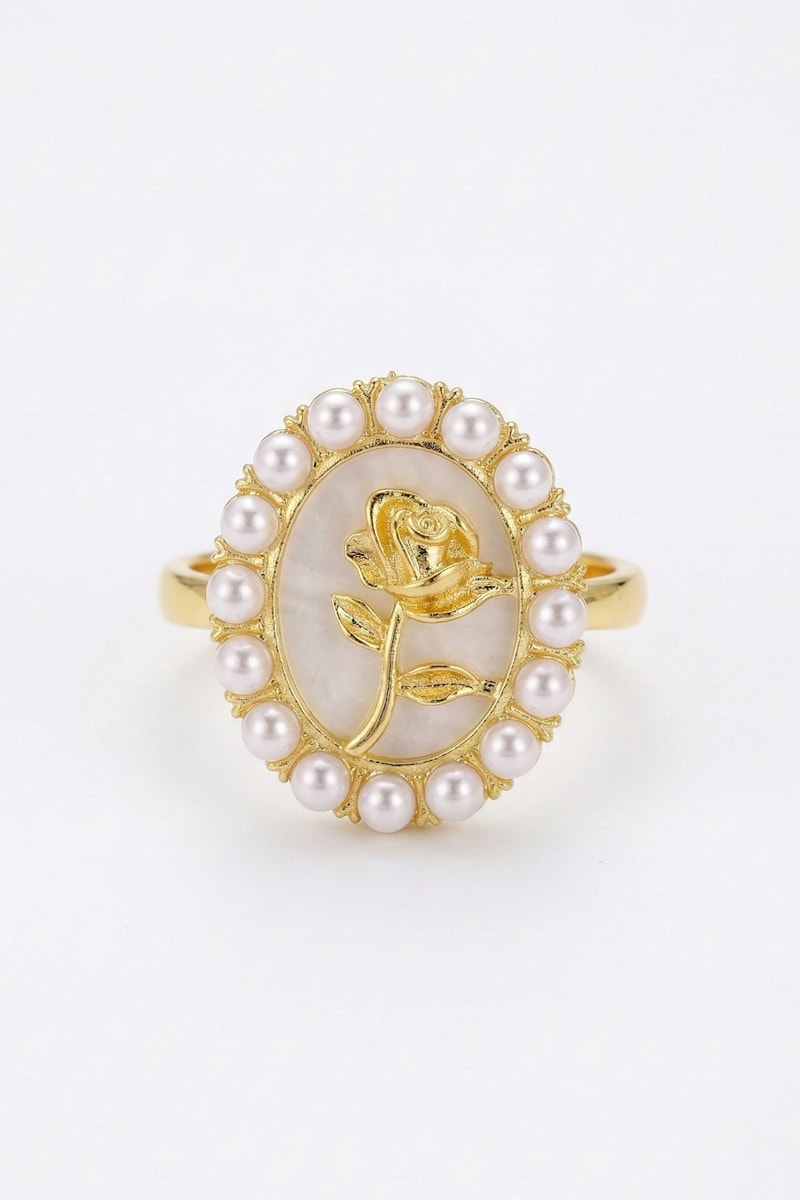 Bague en plaqué or jaune sertie de perles d'imitation.