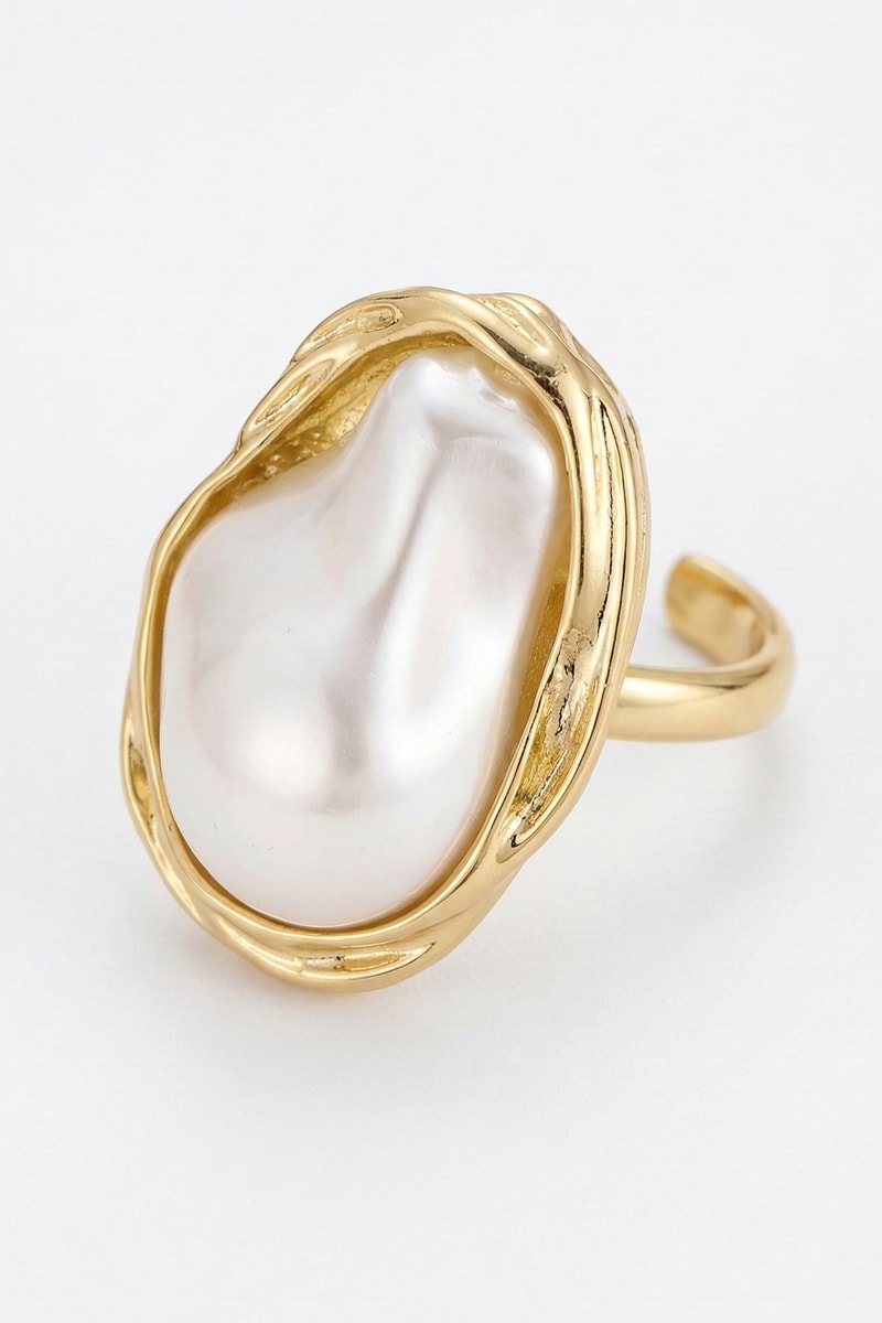 Bague réglable en plaqué or jaunesertie d'une perle d'imitation.
