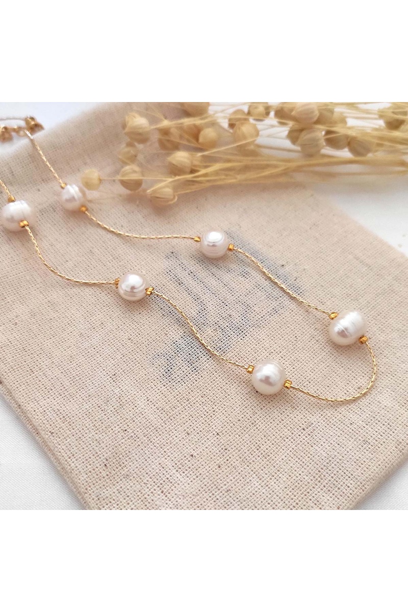 Adoptez ce collier doré à l'or fin et perles! Il donnera la touche originale et élégante qu'il manquait à votre tenue !