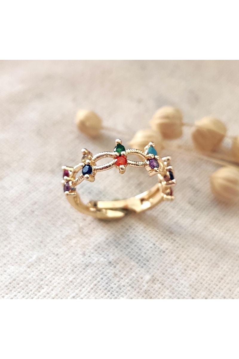 Succombez à l'éclat de cette bague réglable. Les zircons colorés ajoutent une touche de couleur et d'élégance à votre tenue.