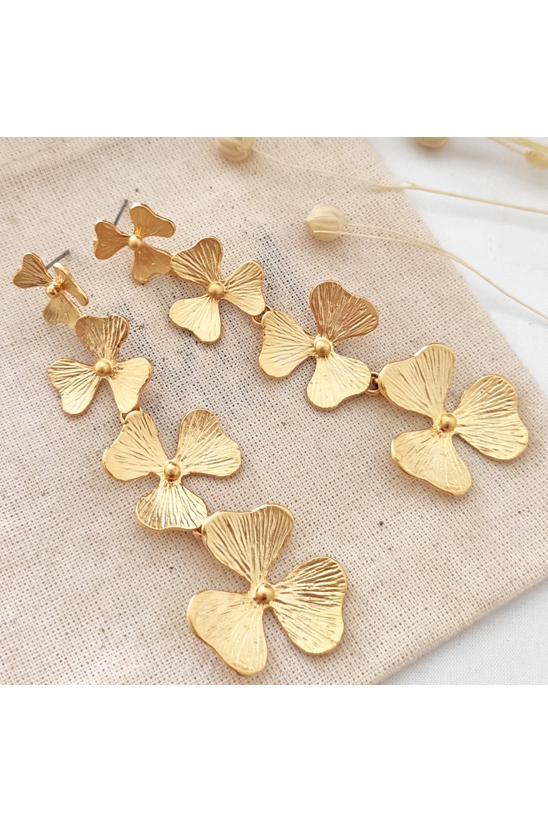 Boucles d'oreilles feuilles - Laiton plaqué or