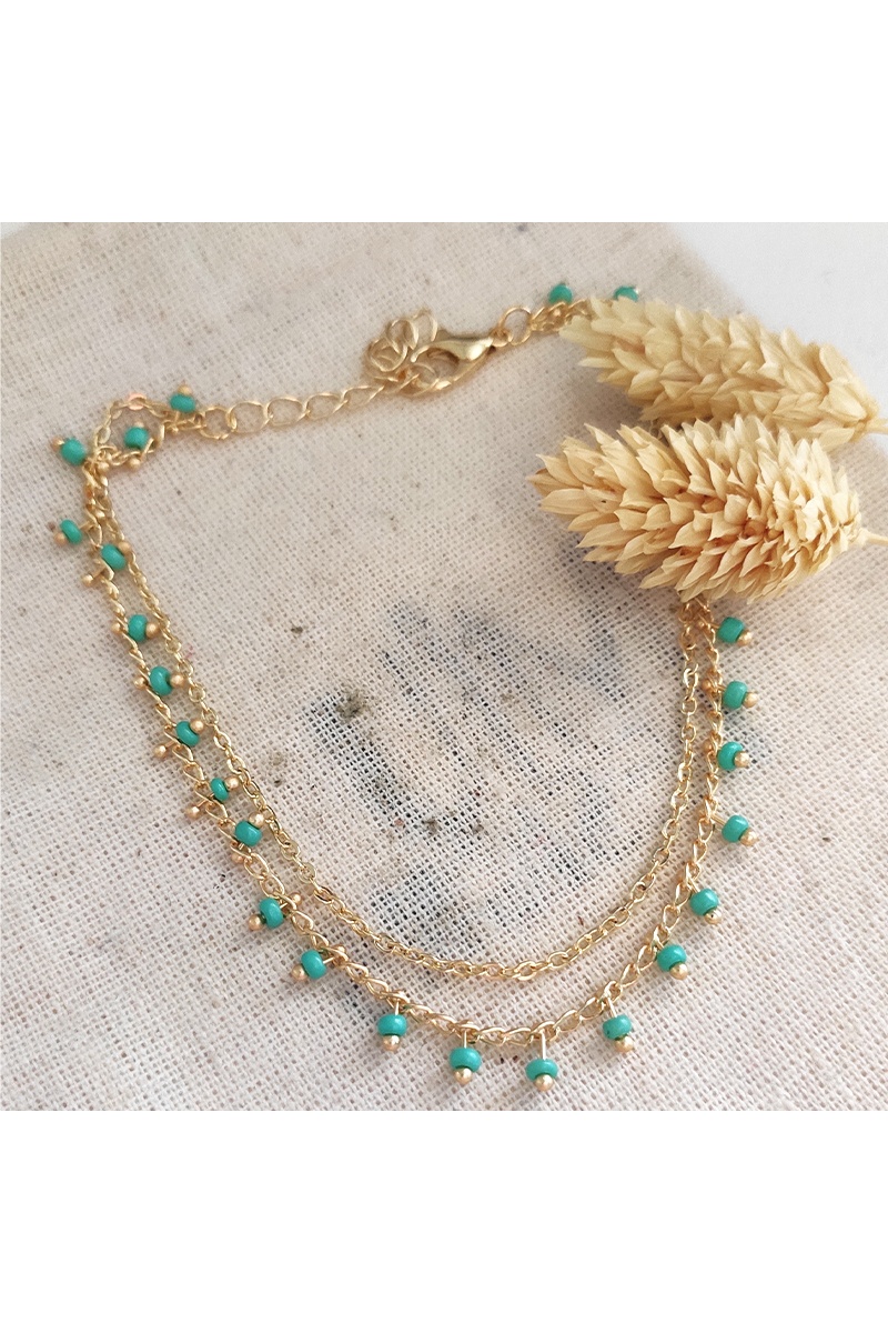 Bracelet de cheville avec des pierres cristaux turquoises - Laiton doré & plaqué or