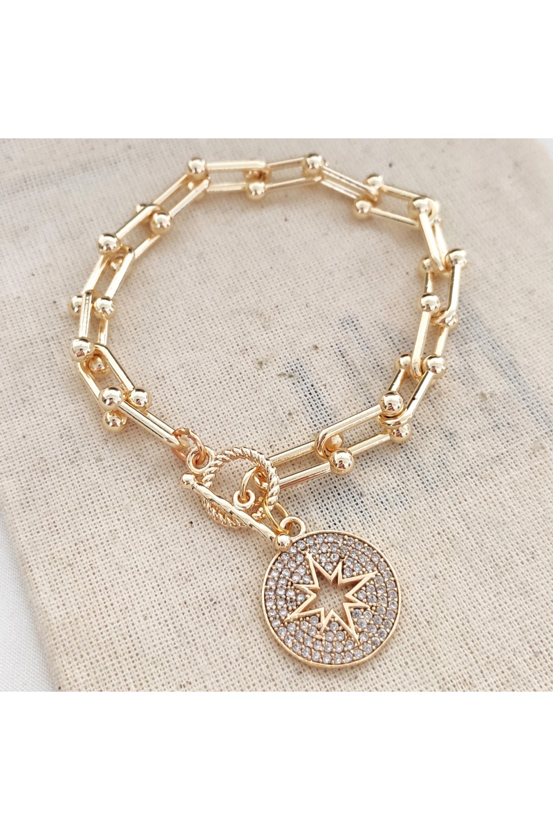 Bracelet Pole Star - Laiton plaqué à l'or fin & zirconium