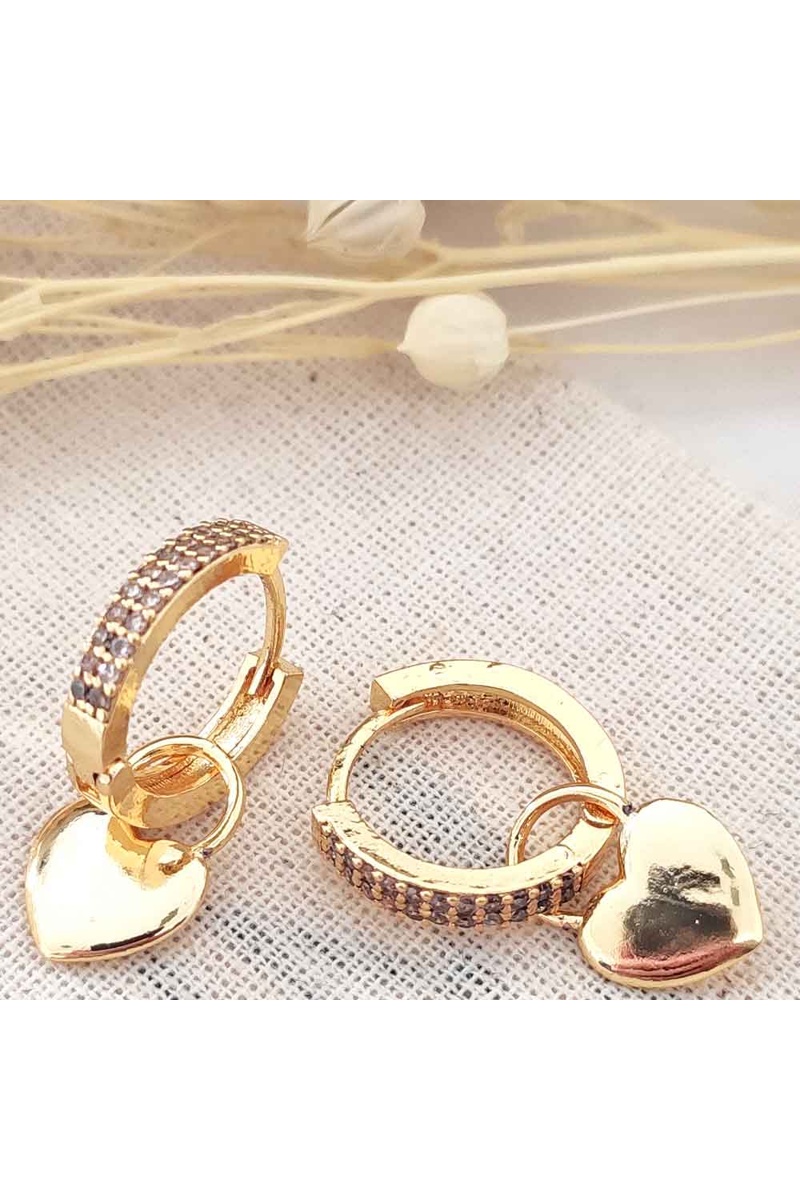 Créoles coeurs - Laiton doré à l'or fin & zircons