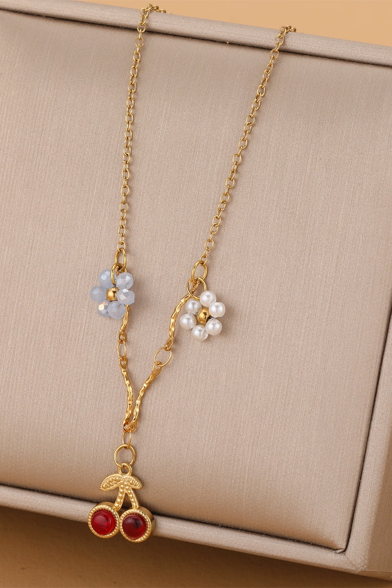 Collier en plaqué or jaune serti de perles d'imitation.