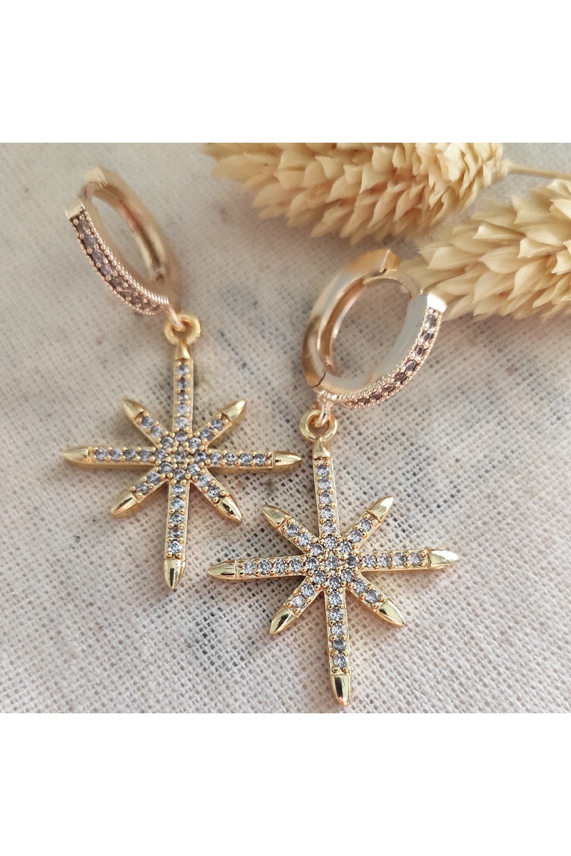 Boucles d'oreilles pendantes en étoile polaire - Laiton doré, plaqué or & pierres de zircon